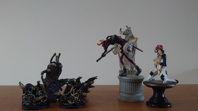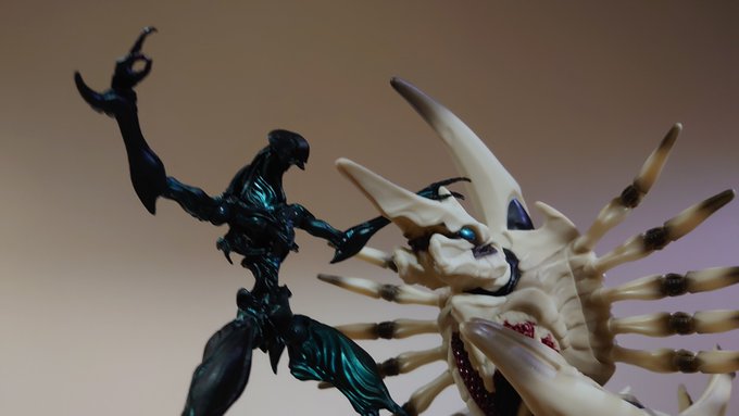 せっかくなのでレギオンと戦わせてみたら…なかなか良い感じになった。 どちらもクリーチャー感が強いから取っ組み合っても割と違和感がない。 終焉(裁人)VS終末(レギオン)って感じがする。 #オモ写 #ファンタジーフィギュアで遊ぼう