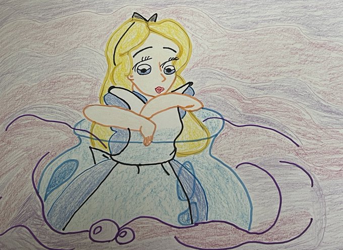 🌊In the lake of tears💧 #Alice #aliceinwonderland #アリス #不思議の国のアリス #イラスト #色鉛筆画 #色鉛筆イラスト #ファンアート #illustration #FANART #Disneyfanart