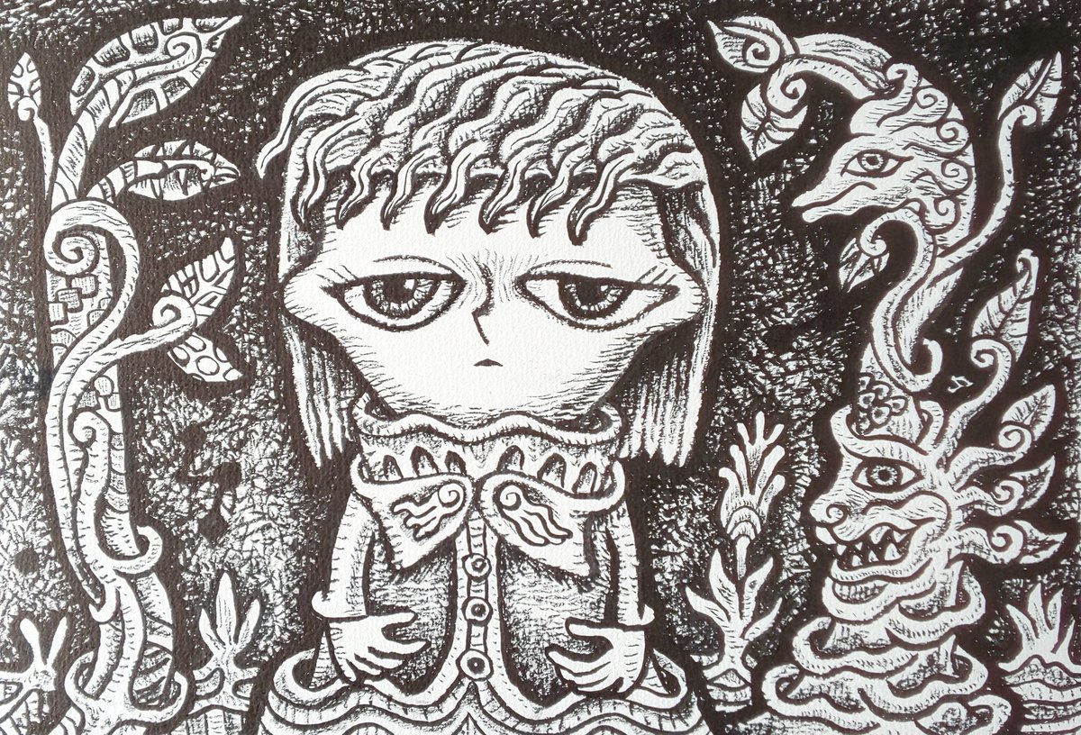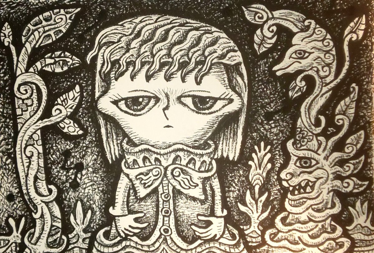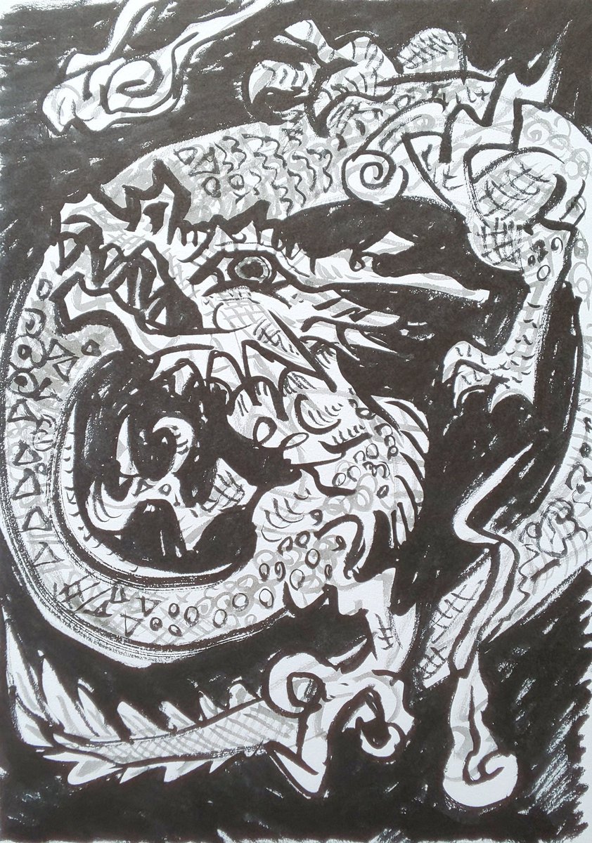 今日竜 #イラスト #モノクロ #筆ペン #アナログイラスト