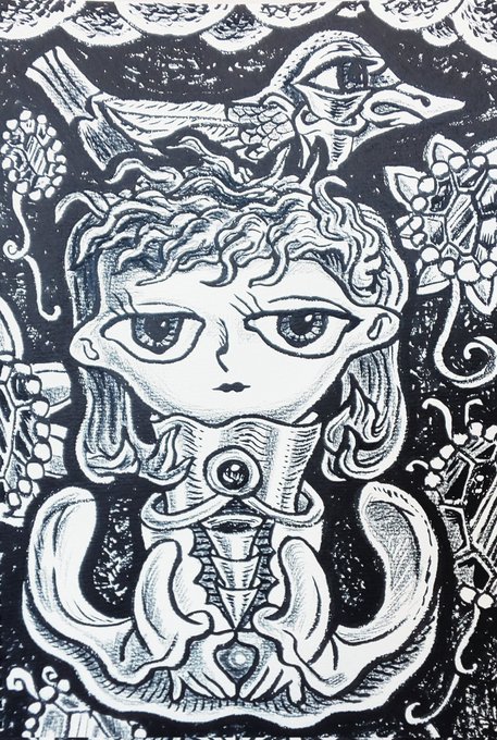完成しました。「飾りつけた竜」 #イラスト #art #artwork #みんなで楽しむTwitter展覧会 #アクリル絵具