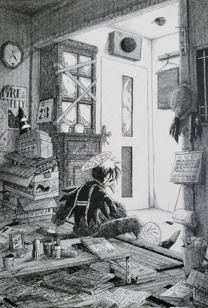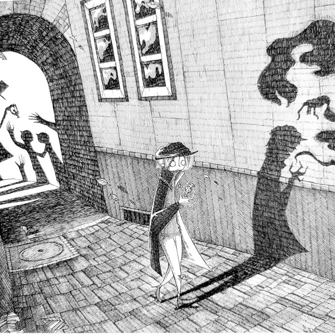 #アナログ絵で魅せてみよ 黒ペン一本で仕上げています。 カラーをモノクロに出来るということは、黒は表現次第で全ての色を表現できるということ! 黒の奥深さにずーっと魅せられています。 #ペン画 #モノクロ #illustraion