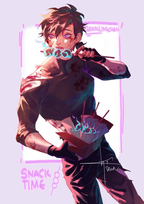 Snack Time! Nimmu enjoying demon souls infused meatballs after a day of hard work.✨🍖 #ArtistOnTwitter #OC #originalcharacters