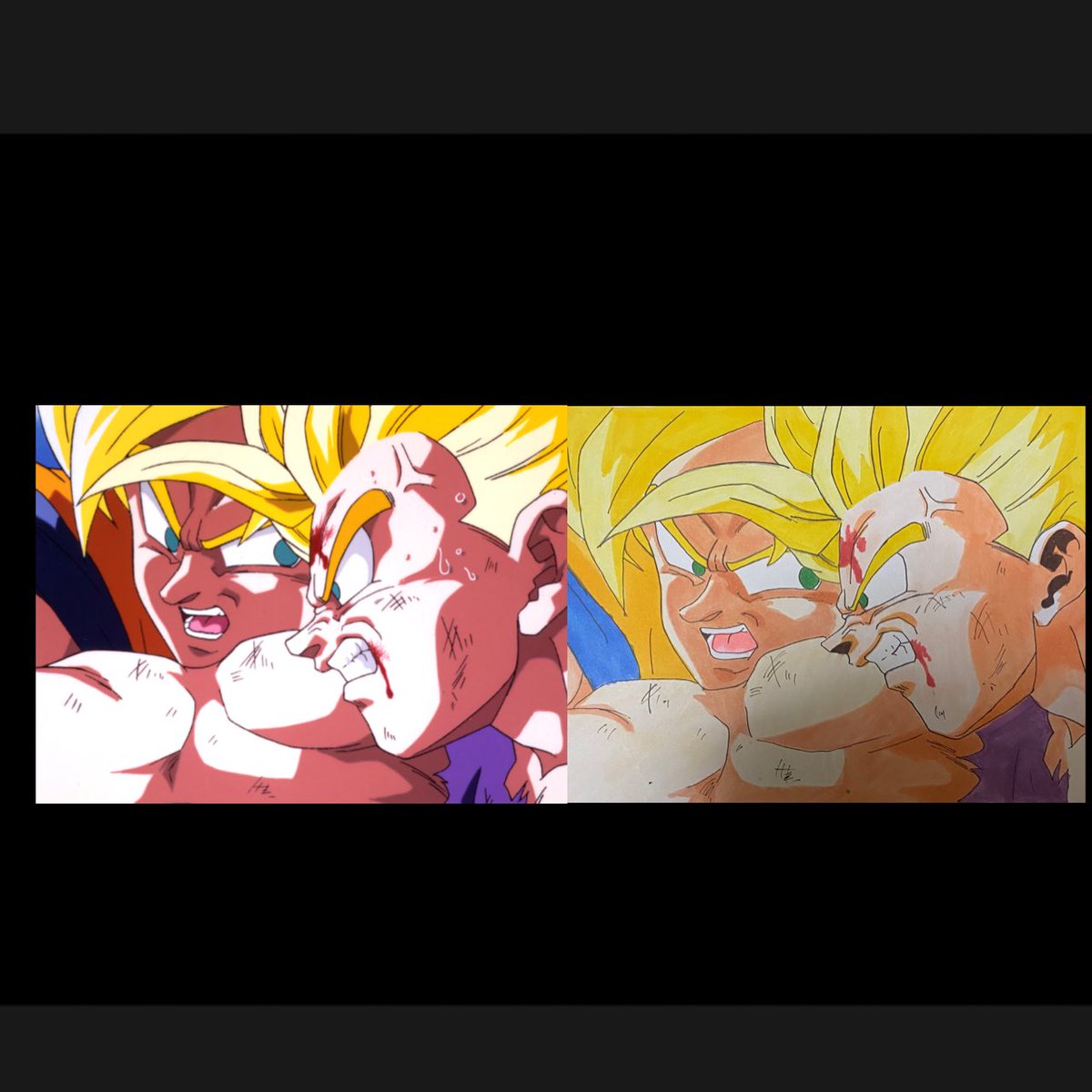 右側が自分が描いた絵です 中々いいでき #ドラゴンボール #絵描きさんと繋がりたい #親子かめはめ波 #イラスト #コピック #ドラゴンボールイラスト #孫悟飯