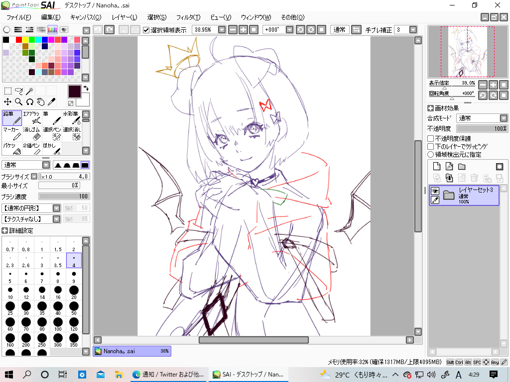 0 5 描き始めのラフ #なのはなあーと 22/08/20 04:35