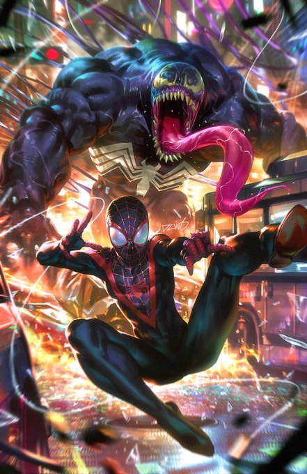 Upcoming Retailer variant for Marvel Miles Morales: Spiderman issue 3 for @the.616comics (IG) They wanted something similar to the previous Venom chase scene cover I did for them. Always fun drawing Miles and Venom! inspired by the style of spiderverse! #spiderman #venom #marvel