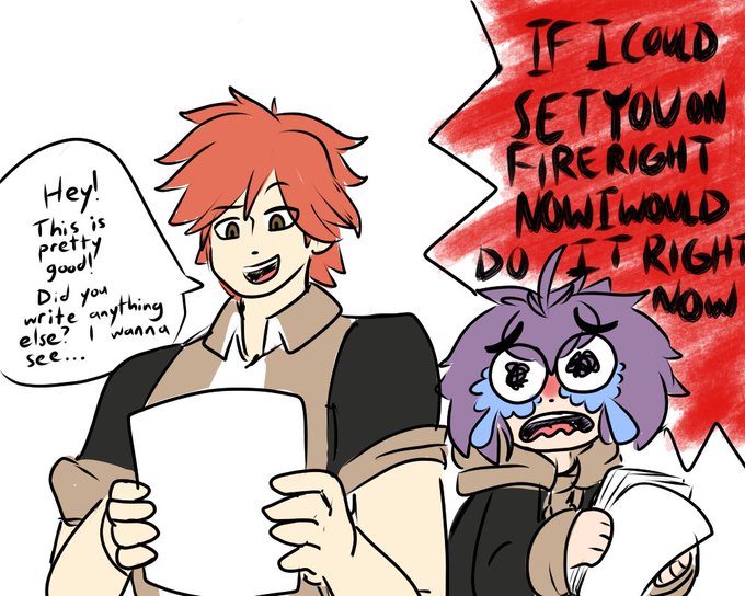 Sometimes a friendship can be created by a boy accidentally reading fanfic by a girl who would melt him on sight if she knew. I just enjoyed Sylvain and Bernadetta's dynamics and had this funny idea. #FireEmblem #FE3H