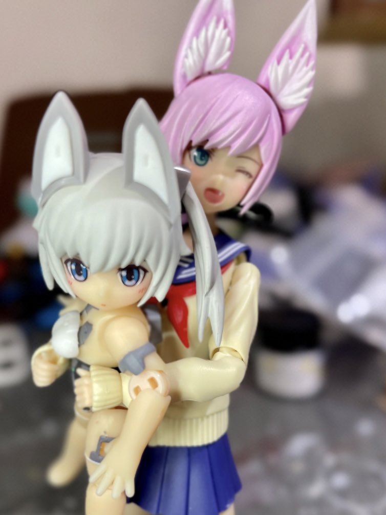 フレアナビットファースト〜サード、フェリルナビット完成。初めてのデスクトップアーミーだけど、カワイイゾコレェ… 小さいデフォルメフィギュアなのにいい尻してる。マシンフェンリルは次の機会に作ります。 #デスクトップアーミー