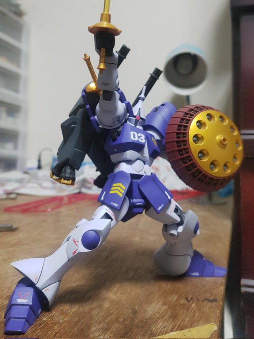 2 8 #こう見えても無編集撮って出し写真 #ガンプラ どうやら産みの親からするとコイツのイメージは鎧武者の妖怪らしい。言われてみれば下半身のスカートアーマーが甲冑に見える。 23/05/08 20:19