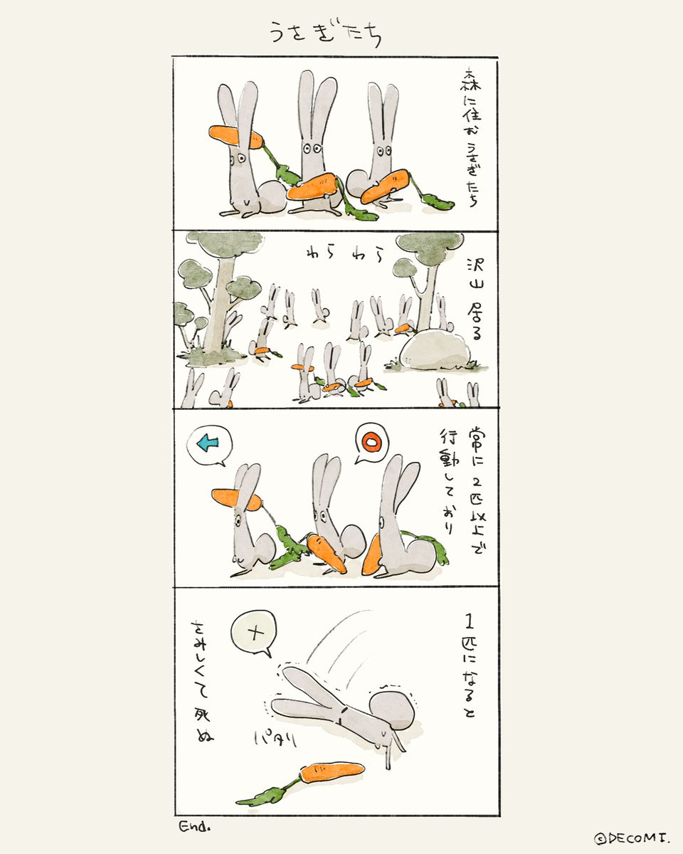 1人になったかもしれないと思って 後ろを振り返るのが怖いうさぎ twitter.com/akazako1/statu…
