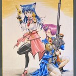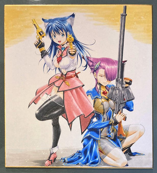 リク⑤ ミア&シェリル まだ発売されていないゲーム『アンシェリアントリガー』の主役キャラリク。 当然ですがアナログ初描き。😆 シェリルの銃は砲身が長すぎて入りきりませんわ。😅 #アンシェリアントリガー #ピクセル digitarouge.booth.pm