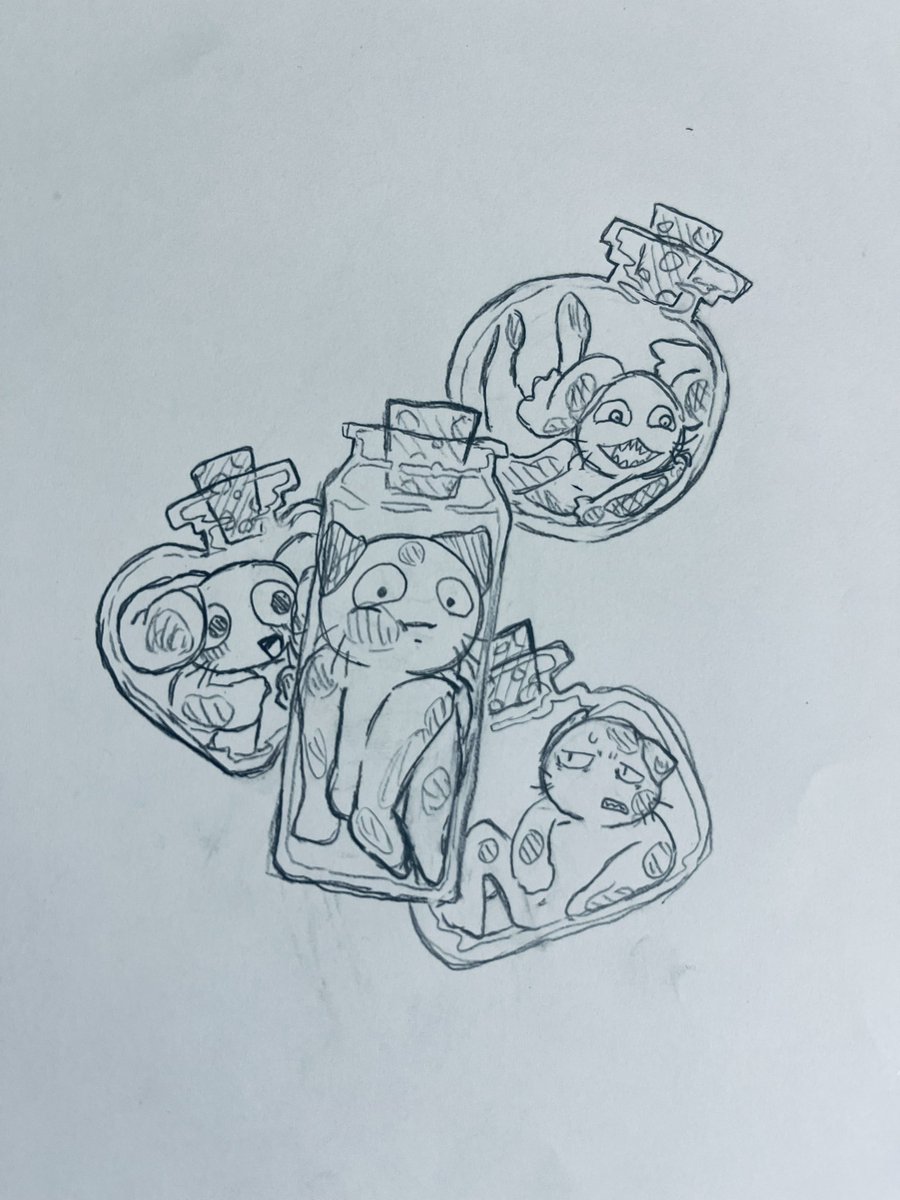瓶詰めされたティーチくんたち 多分増やす #イラスト