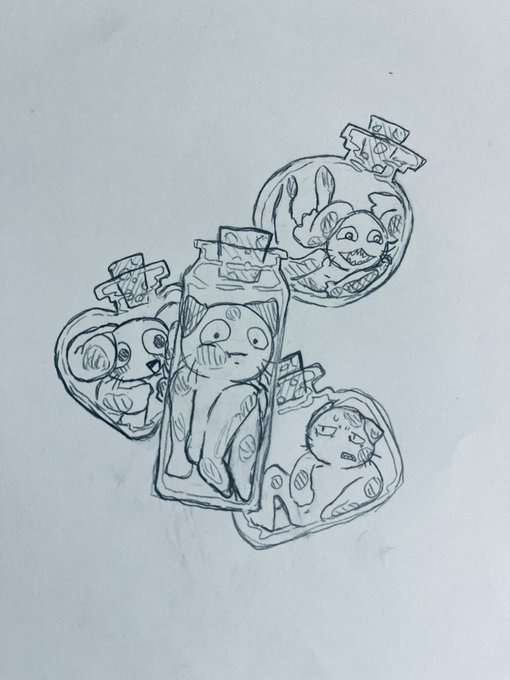 2 13 瓶詰めされたティーチくんたち 多分増やす #イラスト 23/03/28 22:49