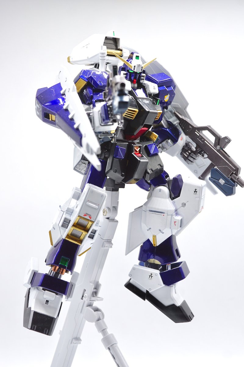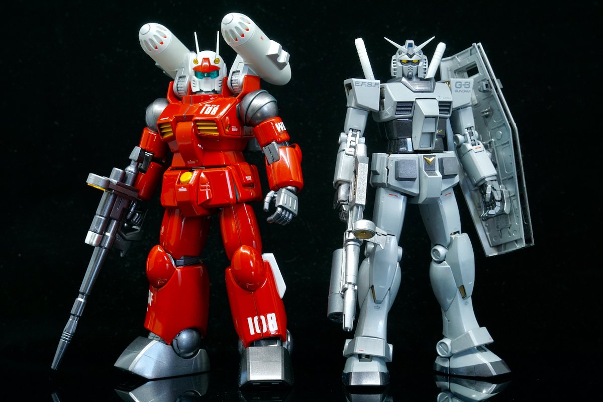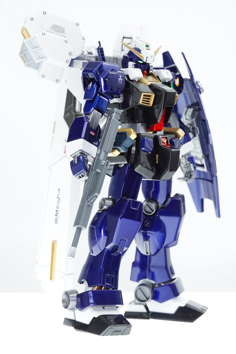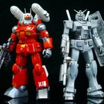 #今年作ったプラモ晒そうぜ 10月-1 作ってみてそのカッコ良さに驚いたRGガンダム。純白のビスト財団仕様のMk-2にブルーのGディフェンサーを合わせたMGスーパーガンダム。そして今年一番の好評価だった金色下地キャンディオレンジ塗装のマラサイ/ロゼット