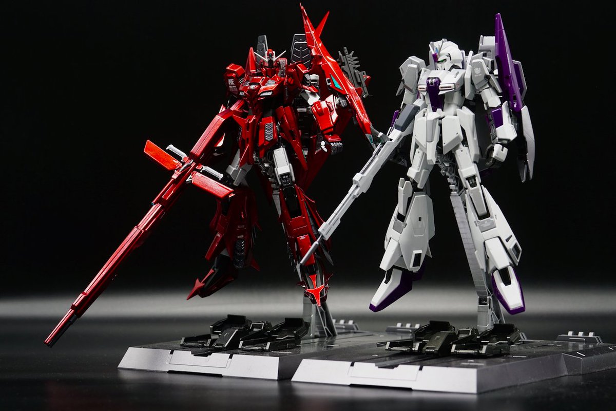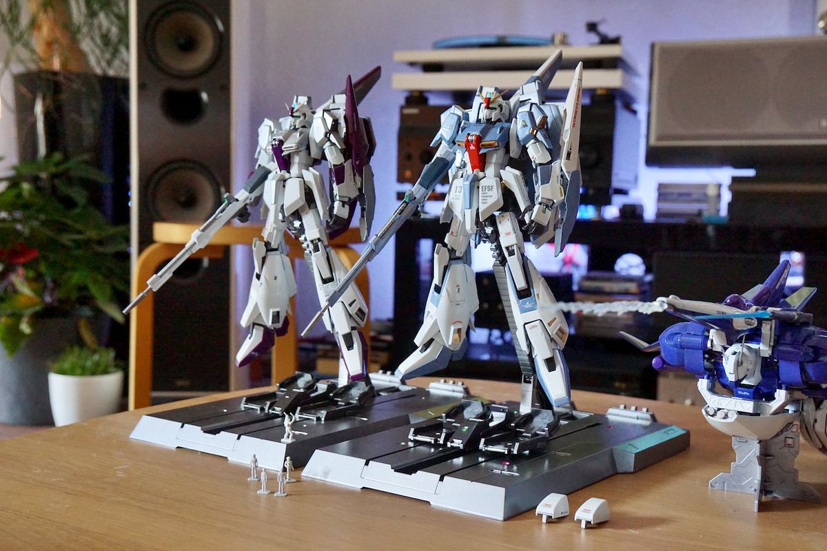 #今月作ったプラモ晒そうぜ 6月はMGの可変機が2つ。小隊を組む隊長機となるリガズィと爽やかなカラーリングに仕上がったゼータ。 湿気が高くて中々塗装の続きが出来ないグレイゼータの完成は来月に持ち越し