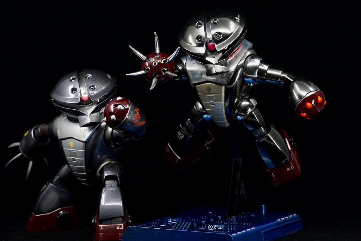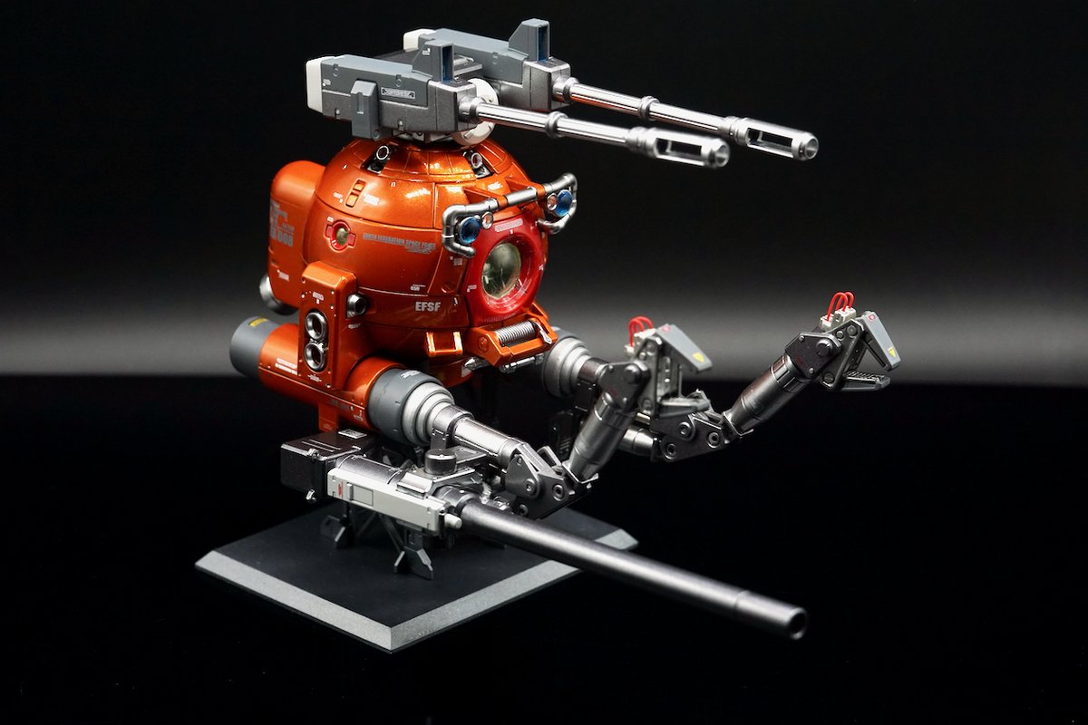 #今年作ったプラモ晒そうぜ 10月-2 子供の頃からずーっと作りたかったHGジオング。下地の粗さの違いによる銀色塗装の質感の違いを検証。メタリックオレンジで塗装したら想像以上にリッチな仕上げになったMGボールK型。夏からのキャンディ塗装の総決算として塗装したウォーグレイモン