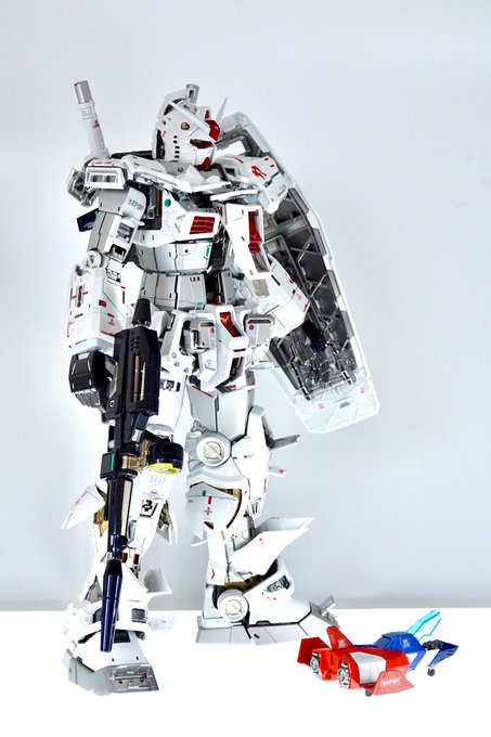 #今年作ったプラモ晒そうぜ 9月-2 9月はもう一つ。以前から組みたかったNT-1を仕上げる。カラーリングに悩み本体はνガンダムに通じる3号機カラーに。チョパムアーマーは白い偽装ガンダムをイメージして設定色とは異なる白灰色の配色に。コレもとても良い感じに仕上がったお気に入りの一つ