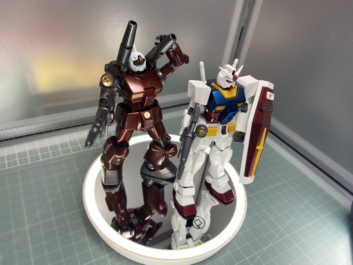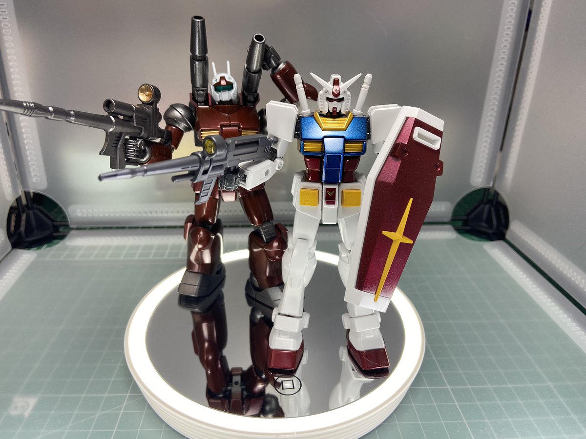 ガンキャノンをテッカテカに塗装した。 以前塗装したガンダムと並べてみましたよ。 #ガンプラの画像貼るとRTされると聞いて #ガンプラは自由だ #ガンプラはどんな自由な発想で作ってもいいんだ #ガンダム #一年線砲