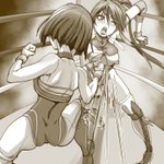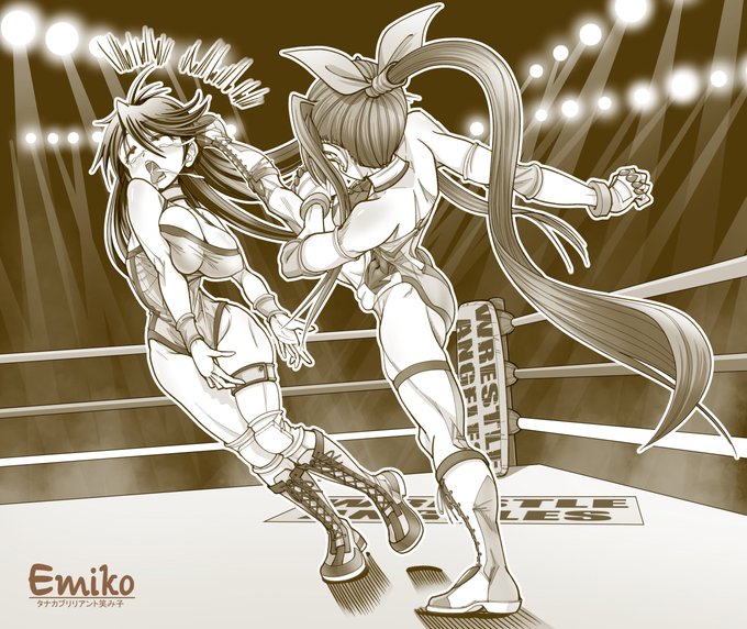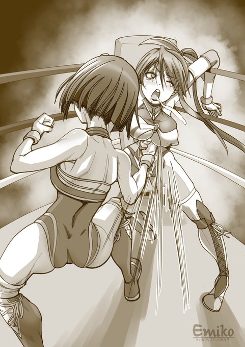 #illustration #catfight レッスルエンジェルス 南 利美 vs 桜井 千里 ~腹パンチ~ 【おまけ】 南利美の顔が見えなかったので 没にしたアングル こちらの方が腹パン感は出ているのですがpixiv.net/artworks/10692…