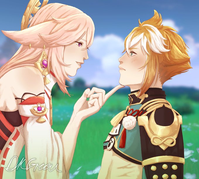 Sorry Gorou, I just had to get Yae Miko. No rest for you. 😅 #yaemiko #gorou #genshinimpact #genshinimpactfanart #fanart #genshinimpactart #genshinimpactartwork #inazuma