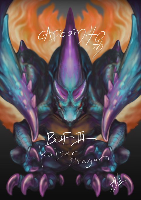 カプコンさん40周年おめでとうございました! ギリギリ間に合いませんでしたw BOF3より、カイザードラゴン! 個人的解釈で描いてみました。3h このシーンは鳥肌もので思い出が濃いです。 本当に沢山の素敵なゲームをありがとうございます! これからも応援しております! #カプコン創業40周年
