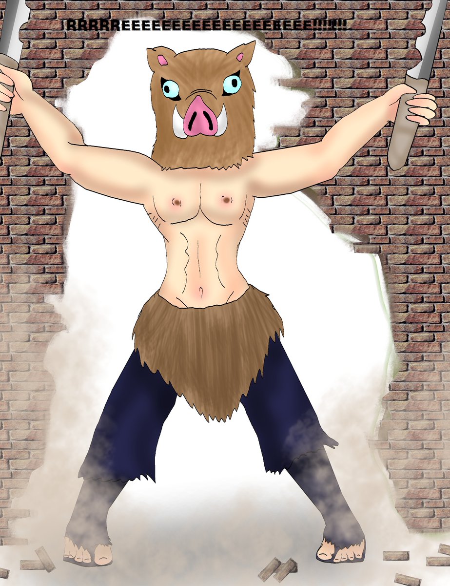 Inosuke from Demon slayer, in hindsight, I shoulda tried a lil harder with the wall bashing background, this fanart's a lil old #kimetsunoyaibafanart #insosuke #DemonSlayerKimetsuNoYaiba #demonslayer