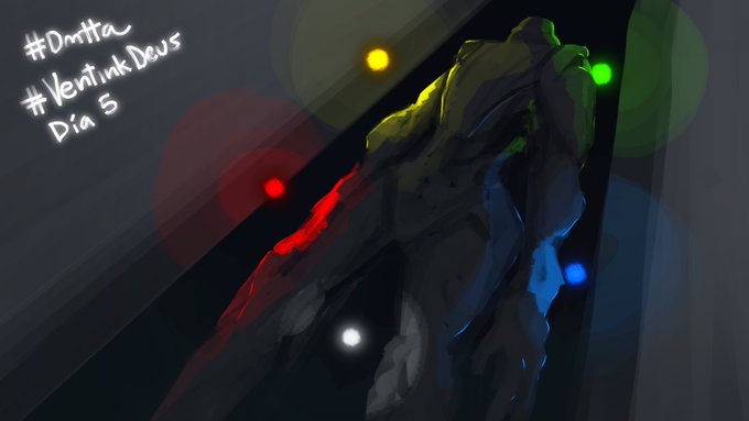 ¿Quién dice que no puedo usar el draft de la portada del episodio 36 como mi #ventinkdeus Día 5? Acá las Cinco Luces y el Gólem de Siukret. No dejen de mandar sus #VentiDeusFanart de #inktober2020 para que les podamos dar mucho amor.