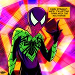 "Damn straight, mate! I'm getting down with the multiverse!" Here is my real spidersona as The Spinal-Spider. I donned the violet and green colouring in this suit. #HumanArtist #AcrossTheSpiderVerse #spiderverseteamup #spidersona #ocart #spiderman twitter.com/wolfsvile/stat…