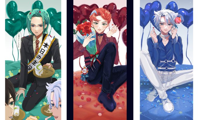 男3人生誕絵揃った‼️できれば来年は祈瑠もメイクアップ後で描かせてください