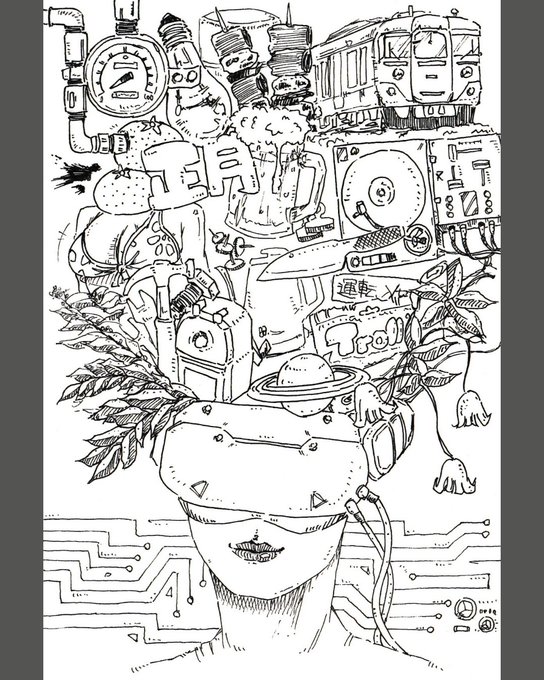 下描き:鉛筆(F) ペン入れ:uniball singno 0.38/0.28 ケント紙(はがきサイズ) 目に映るモノや頭のイメージを何も考えず置きましたSNSで見かけたVR装着の写真から脳内を映像化する感じ」にしようと。 #イラスト #ペン画 #アナログ #イラスト好きな人と繋がりたい #お絵描き好きな人と繋がりたい