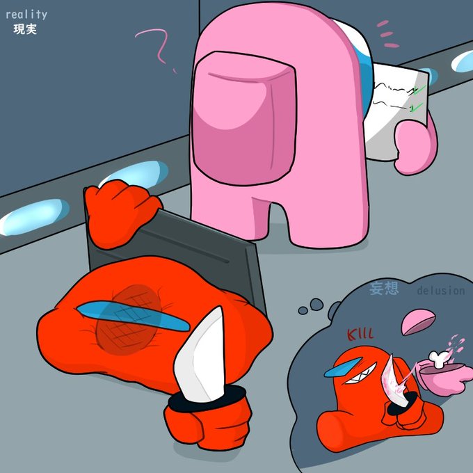 #AmongUs #AmongUsFanArt かっこよく登場してキルをしたかった赤インポスター