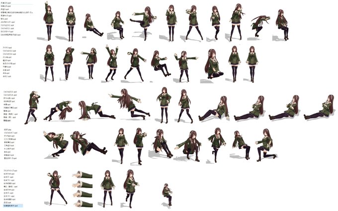 日頃よくお世話になっている 秦禊様の 「MMD紙芝居に使えるかもしれないポーズデータ集」 nicovideo.jp/mylist/53811285 何度も使うに当たってポーズ一覧画像が無かったので自作したんだけど、 ただポーズ流し込むだけで可愛いこの八重沢なとりって娘ずるくない? #なとあーと (C)Appland, Inc.