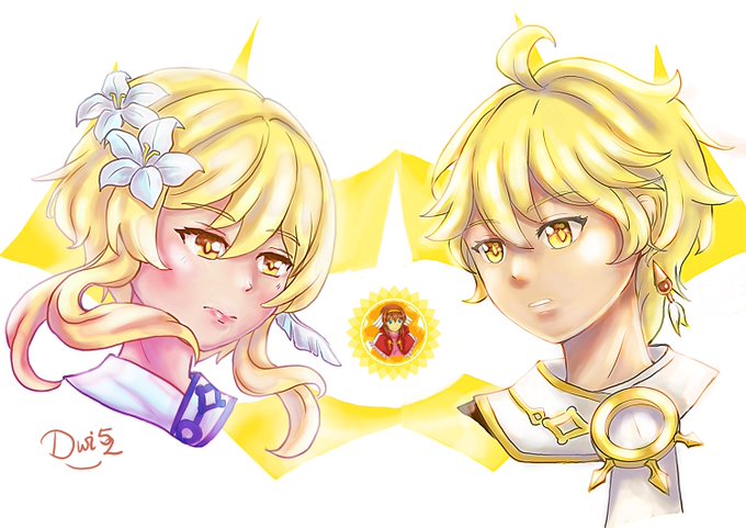 Genshin impact fanart - Lumine and Aether headshot🍀🍀 #animestyle #anime #genshinimpactfanart #Genshin_Impact #aether #lumine #commissionsopen #ArtistOnTwitter #artidn