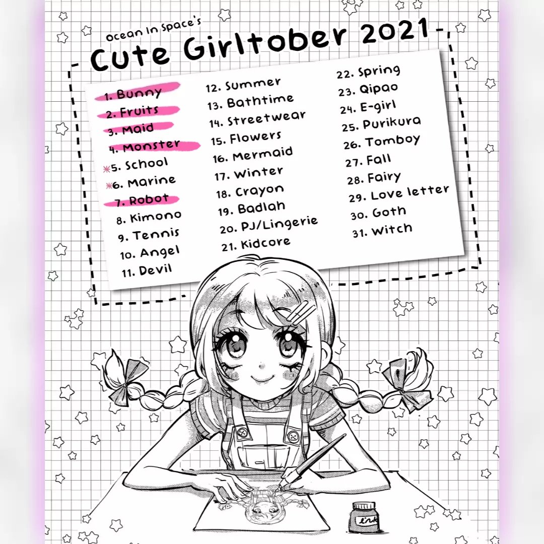 Tuve segunda dosis de vacuna, asรญ que los dรญas que no pude dibujar los subirรฉ el 1 y 2 de noviembre. โจ #inktober2021 #inktober2021day7 #cutegirltober #cutegirltober2021 #digitalart #robotgirl