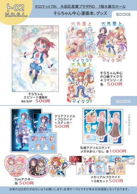 🐻BOOTH通販が始まりました💿 #ホロケット 7thでの頒布物をほぼ置きましたので来れなかった方ぜひ利用してください(*•̀ᴗ•́*)و ̑̑そらちゃんマンガ本、マイクラホロ鯖4コマ、私服アクスタ、クリアファイル、アクキーなどがあります~ url→ds-ndsl.booth.pm twitter.com/DS_NDSL/status…