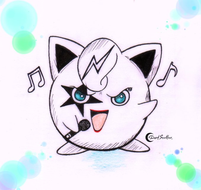 Day 8 - Rockstar Que lindo canta el jigly..........zzzzzzzzzz #inktober #day8 #inktober2022 #illustration #Pokemon #fanart #drawing #anime #jigglypuff #peru #tintubre #traditionalart #darktober #rockstar #cute