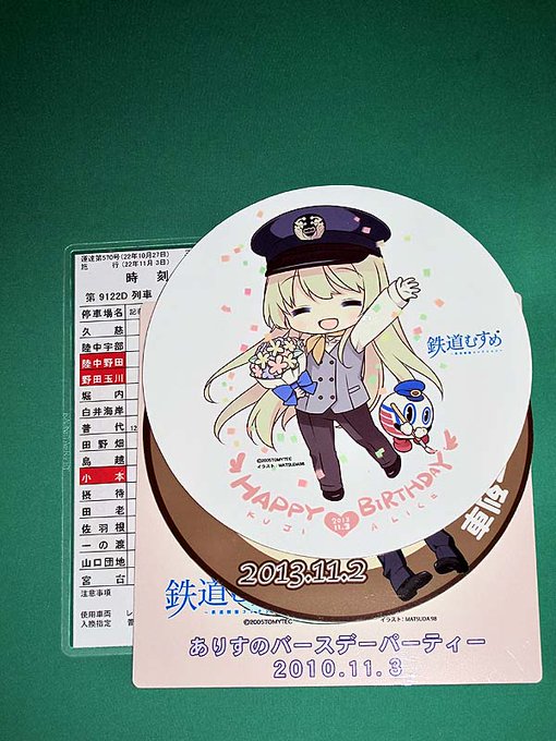 5 6 ありすさんハピバ。 初回イベントが2009年なので今年で丸10年。(開催できていれば) 数えてみたら3回しか行っていない……。 うに弁当や赤鬼定食を食べに、再訪できたらいいな。 #久慈ありす #鉄道むすめ #三陸鉄道 #岩手 #久慈 #うちのこかわいい 19/11/03 01:03