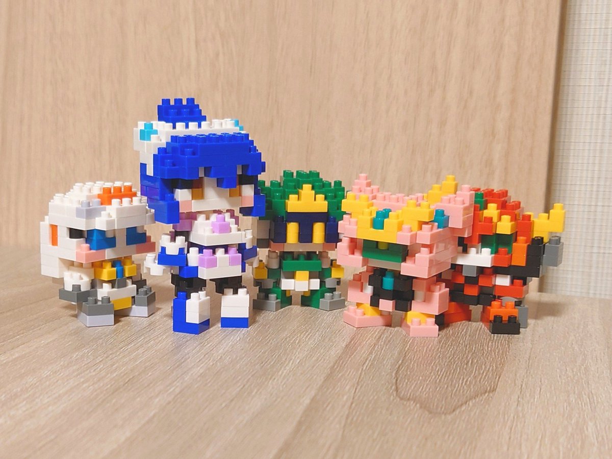 サナ、ファウナ、クロニー、ムメイ完成。 これでホロライブEN制覇‼️ 私、大満足😊 #ナノブロック #galaxillust #FineFaunart #クロニーラ #ムメ絵