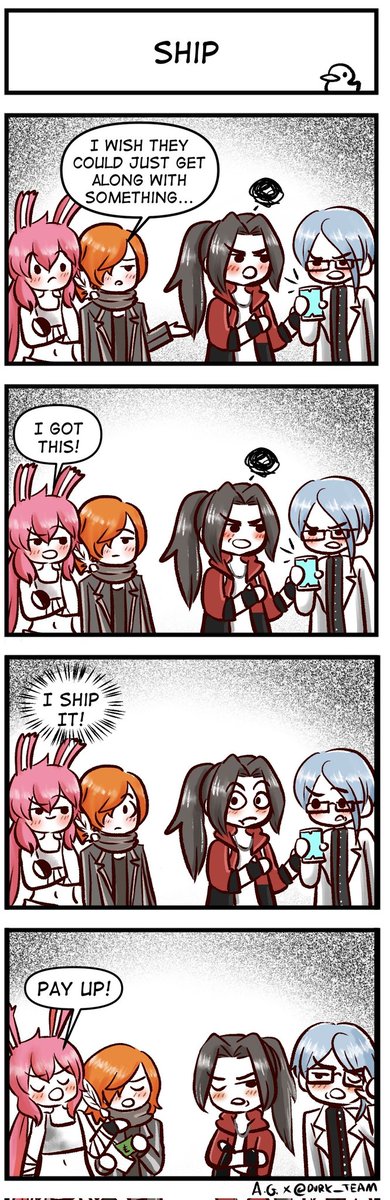 3 25 How does one solve the issues of discourse in the team? Viola might have a solution... Comic done as usual by the amazing @AG_Nonsuch. #RWBY #RWBYDoodleverse #RWBYfanart #RWBYV9 #DVRK 23/03/22 04:55