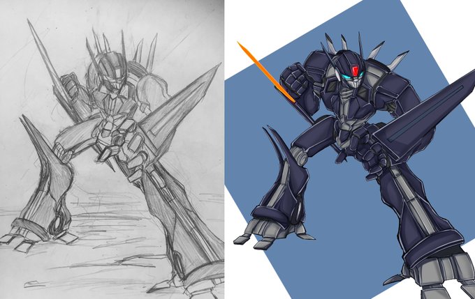 2年前のアナログ絵を元にもう一回描いてみた #イラスト #ロボット