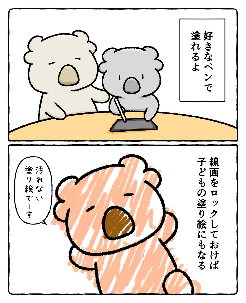 子ども達もiPadでお絵描きが大好きです🐨 塗り絵をスクショしておけば何枚でも楽しめるし、汚れないし、記録も残せる、画像で祖父母に送れるというメリットだらけ! #漫画が読めるハッシュタグ #イラスト #iPad