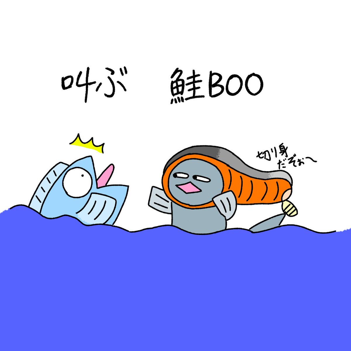 叫ぶ鮭BOO〜(?) な〜んつって!(???) #絵描きさんとつながりたい #イラスト