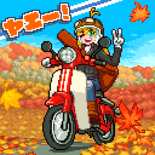 題「弦巻マキちゃん秋のツーリング」 つじあやのの 「愛のかけら☆恋のかけら」の MVが大好きなので トリビュートしてみました v(・∀・)yaeh! マキちゃん誕生日おめでとう! #pixelart #ボイロドット画廊 #VOICEROIDドット絵部 #2019年弦巻マキ生誕祭