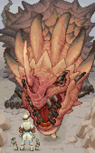 #絶望を感じたシーン #Pixelart ラオシャンロンです。がおー🦖 初の対面時は 今までゲームでは感じたことの無い巨体に 思考が停止しちゃうほどでした 初タグ作成してみました。 映画やアニメ、本でもなんでもいいので使ってください