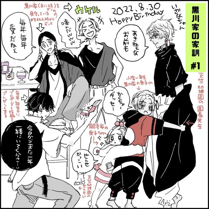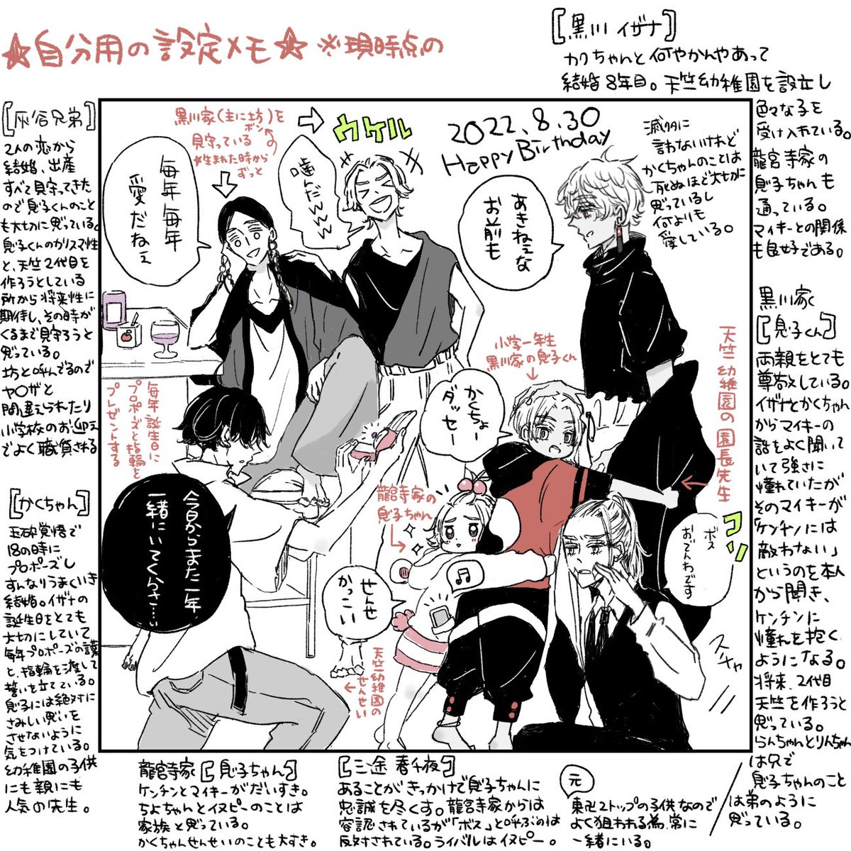 49 502 カクイザ(+ドラマイ+灰谷bro+春千夜) 要素含※2枚目は読まなくても全く問題無いうえに文字だらけです…イザナちゃん誕生日おめでとう(2回目) 22/09/01 22:27