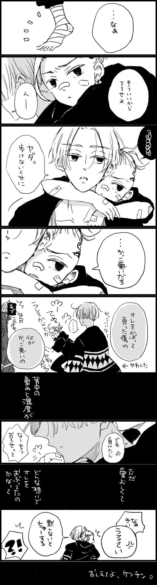 ドラマイの(年下×年上)はあまり受け入れられない設定だろうなと思ってはいますが龍宮寺を甘やかせたい性癖なので再掲。現代軸でもう一度だけ万次郎をおんぶする龍宮寺が見たいです。