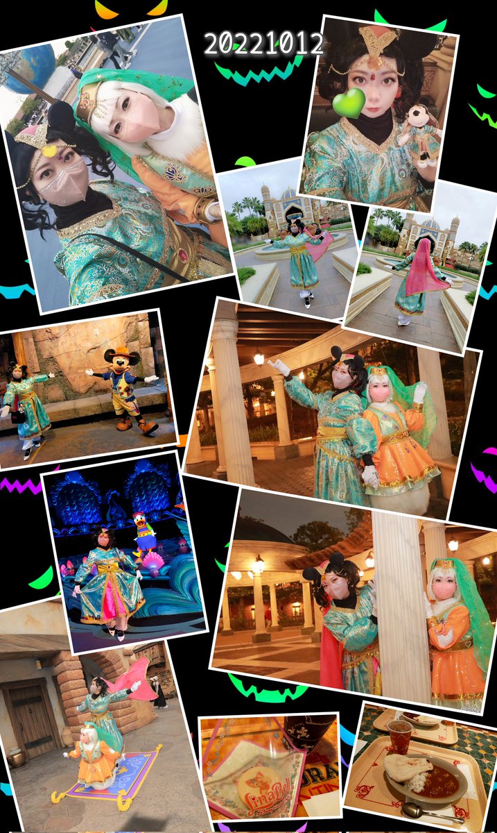 Dハロの思い出🎃20221012 アラビあわせ〜✨✨ ド派手な衣装は作ってても着てても楽しかった♥ 周年衣装だって結構わかってもらえたのもありがたかったです🙏 ナナちゃんの狂気の塊アラビちゃんも生で拝めたのでマジで爪の垢を煎じて飲ませてもらえば良かった…😇 #あきらさんのDハロ #Dハロ仮装2022