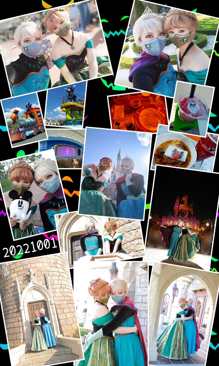 Dハロの思い出🎃20221001 私のDハロ初日! りかアナと3年越し?念願の戴冠式でした😭 沢山の人にお声掛けされて、アナ雪すげぇ!ってなりました…✨ シーハニさんのドレスとプロが作ったウィッグは神だった…✨ アナ… @dddollx602 エルサウィッグ… @hiichi_h #あきらさんのDハロ #Dハロ仮装2022