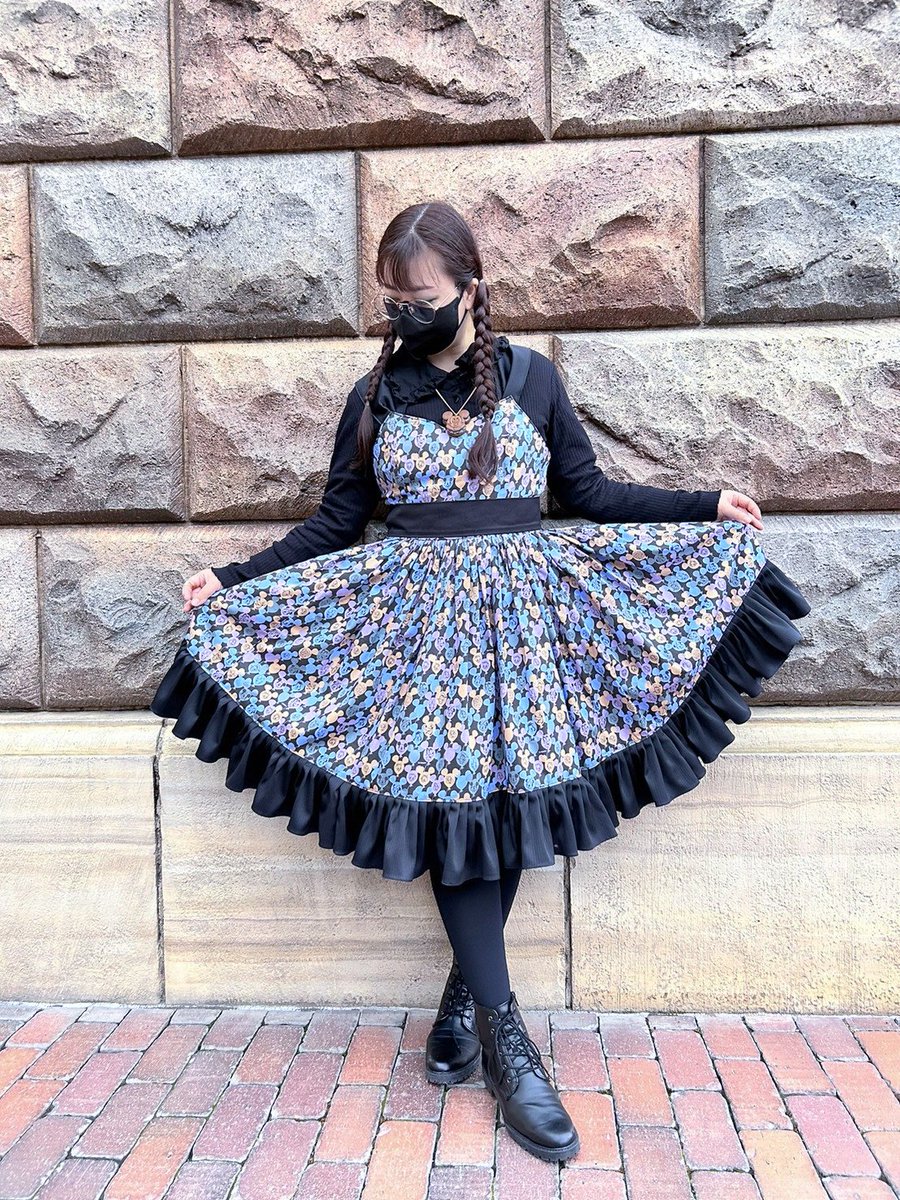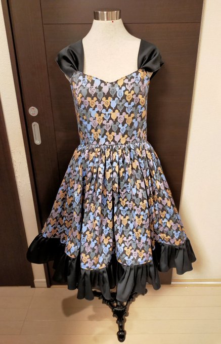 DisneyHandycraftシリーズ カットクロスでお洋服第3弾! ハロウィンver.バルーン柄でジャンパースカートを作りました✌️ 2晩で…😇 世間はクリスマスだけどどうしてもこの生地で作りたかったんだ… もう少しレースとかモリモリにしたいけどひとまずベースは完成✨ #あきらさんの衣装備忘録