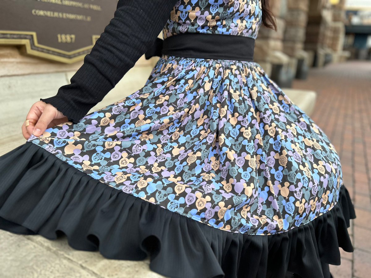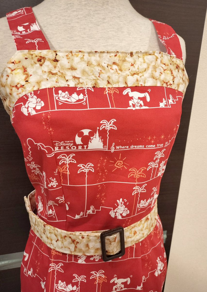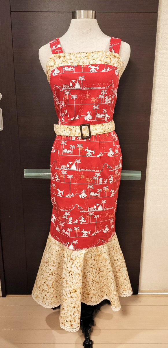 DisneyHandycraftシリーズ カットクロスでお洋服第5弾! パークフード容器モチーフにリアルなポップコーン柄をあわせました! 前回のワッフルちゃんと並んで歩きたいなぁ…っていう妄想。 タイトスカートに裾フリルをつけてマーメイドスカートっぽく。 後ろはシャーリング! #あきらさんの衣装備忘録