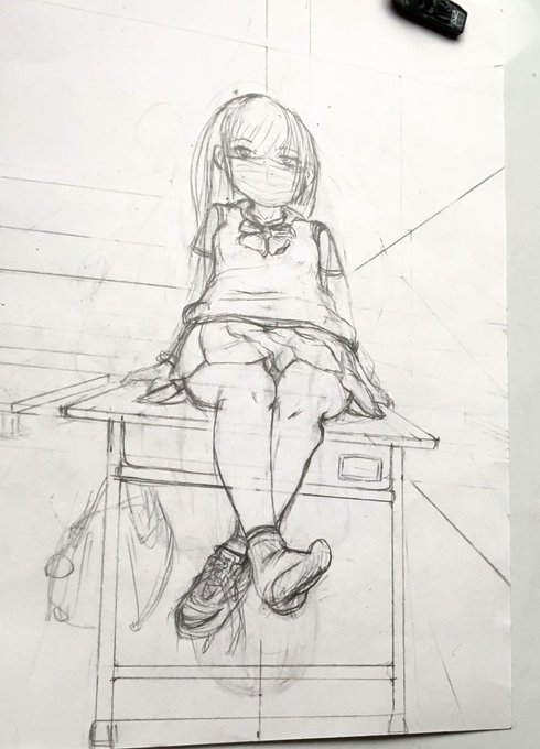 ラフ 背景むずすぎ… #イラスト #アナログ絵